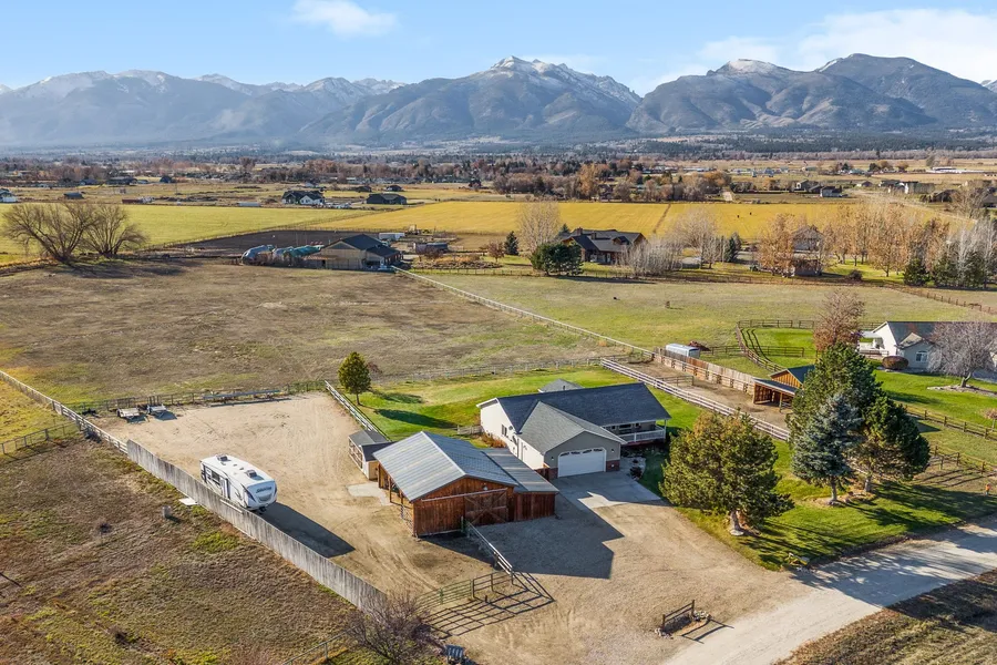 What a gem! Situated on 5.06 acres in Corvallis, MT with coveted views of the Bitterroot Mountain range. This residence boasts a thoughtful design for optimal space and functionality. Add to that updated granite countertops in the kitchen that includes a pantry, and just added a new hot water heater and a brand new roof in 2022. The open layout seamlessly connects the living room, dining area, and kitchen, creating an ideal space for entertaining or daily living. Enjoy the warm and welcoming atmosphere filled with natural light as you enter, and relish in the instant gratification of the living room fireplace fed by natural gas to the home. This property is perfect for a hobby farm with a chicken coop and is suitable for several horses or cattle. There is heated stock water, loafing shed and a fenced pasture area with a barn and a bonus insulated shop area. BRID irrigation with laterals and pump included. Underground sprinklers irrigate the area around the home. This property offers the perfect blend of rural tranquility and easy access to amenities and recreational opportunities. Don't miss the chance to make 1071 Honey Well Drive your new home, embodying the best of Montana living. Schedule a showing today to experience the charm and comfort of this picturesque Corvallis residence.