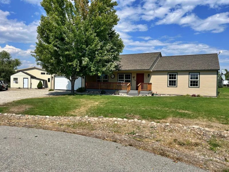 2004 Single level living on 1.46 acre at end of cul de sac. Exterior features include: covered front porch, back patio, 30x40 shop with separate office/guest room, wood shed, chicken coop, large & level yard, underground sprinkler system, plenty of extra parking. Shop has plumbing drain roughed in to add bathroom. Interior has open floor plan, wood floors, attached 2 car garage, laundry/utility room with sink, wood stove, stainless appliances.
