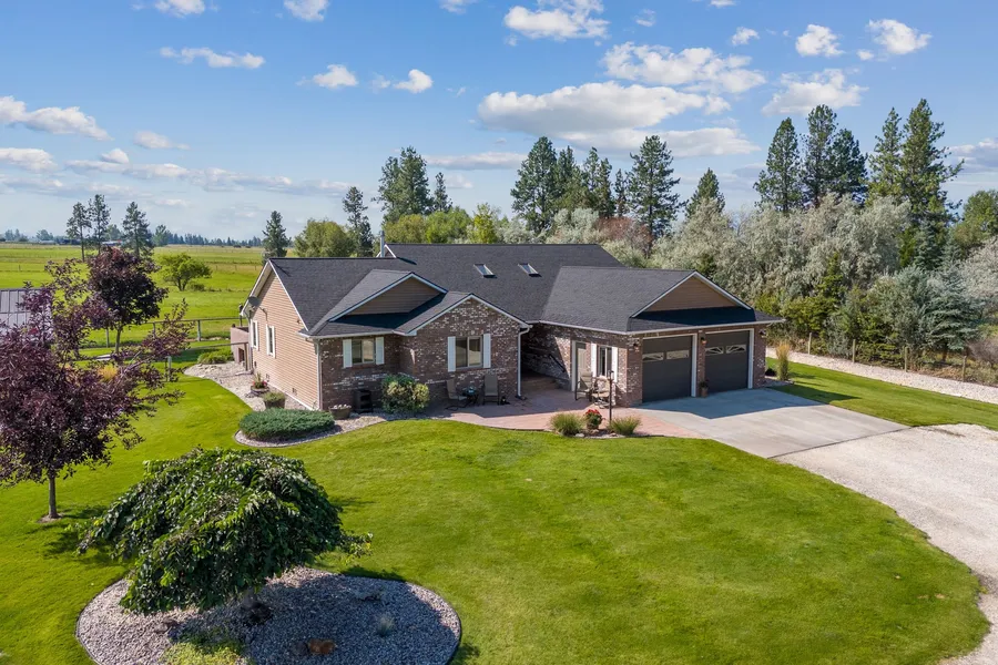 Nestled on 1.6 meticulously maintained acres with irrigation rights, this charming single-level home offers the perfect blend of rustic elegance and modern convenience. The 1696 sq ft residence features an open floor plan adorned with a barn wood accent wall, a cozy gas fireplace, and rough sawn floors that exude warmth and character. The kitchen is a chef's dream, with granite countertops, a butcher block island, a hammered copper sink, and a wet bar with a beverage refrigerator. Geothermal heating and cooling ensure year-round comfort, while the new 30-year roof provides peace of mind. The home also includes enclosed patios, and an outdoor fire pit and hot tub. A separate 744 sq ft 1-bedroom, 1-bath guest house offers additional space for visitors, complete with its own kitchen, bath, sitting area, and utility room. The property also features a barn/shop, a second shop with heat and 100-amp service, a 14-foot door, a fenced garden with a very special chicken coop and grand views. The pristine landscape is a gardener's delight, and the property is conveniently located close to Stevensville. This is an unparalleled opportunity to own a piece of Montana's beauty with all the modern amenities. Contact Cindi Hayne at 406-240-6497 or your real estate professional for your private tour.