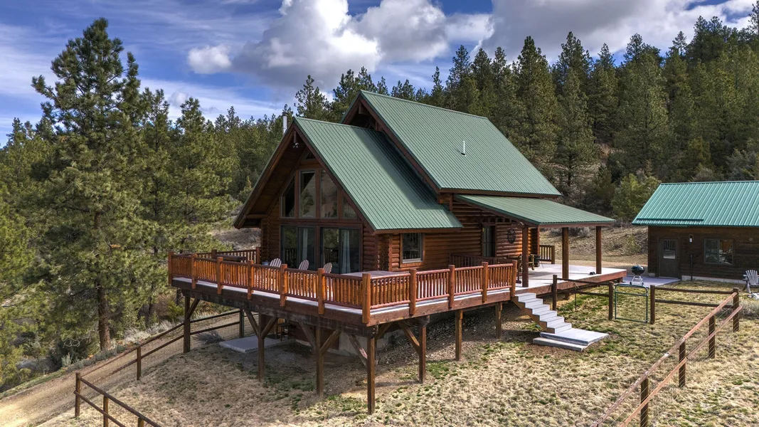 Serene & private 28.9-acre property borders protected lands in conservation easements & ranch land, offering massive 50-mile mountain views for your private sanctuary! This well-maintained, quality log, 3 bedroom, 2.5 bathroom, 2,304 +/- sq ft home is the Montana dream! Beamed, vaulted ceilings & incredible picture windows take in the Bitterroot Mountains and peaceful valley below. Enjoy quiet evenings in front of the fire or enjoy all four seasons from the large decks! The open living, quality kitchen, and dining area is filled with natural light, creating a comfortable, western lodge-like atmosphere. The updated kitchen is sure to please with its ample space and deck access. The primary suite is on the upper (loft) level and includes a double vanity, turn-of-the-century-inspired copper soaking tub, & a tiled shower. The walkout lower level offers 2 additional beds, a bath, living area, & laundry room, perfect for guests to have private space. Year round access & near city services. Watch the joy of Montana unfold before you with elk, deer, turkey, and critters common to the area right from your cozy home! Interested in fishing? The home is just minutes from blue ribbon waters, floating, hiking, horseback riding, ATV fun, and more! The updated kitchen is perfect for quick meals and gourmet dinners, with ample cabinet space, a pantry, newer appliances, concrete countertops, cherry cabinetry, and a private patio. The Main floor has a great woodstove, in-floor heating, and lots of mountain view windows. This immaculate log home has been well cared for. The lovely primary bedroom suite is located in the charming upper loft area with great mountain views. The family room, two bedrooms & a bath are on the lower level with private access. The kitchen, living room, dining room, spacious pantry, and guest powder room are on the main level, leading out to the extra-large 1200+/- square foot deck, perfect for fun gatherings. A must-have outdoor fire pit is set up for parties or starlit evenings. The property sits off the road for quiet privacy. This home can be sold furnished.