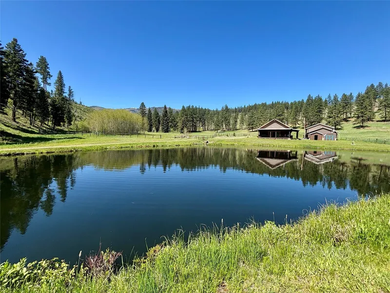 Enjoy this prime Montana location. This 1690 s. f. log home overlooks a Pond / Praine Creek a year round meandering through and providing irrigation to the fenced pasture area. Bordering State land which backs up to National Forest offers many trails with miles of outdoor adventures including a nearby downhill ski area. This traditional style log home was built in 1987 with covered decks on front and side decks. Magnificent views of the Sapphire Mountains to the east. Home has 2 bedrooms 1 full bath and 1/2 bath on the main level with kitchen, dining and living room, vaulted ceilings and stone wood fireplace. The upstairs loft has 2 bonus rooms and full bath. Additional living space in the Shop/Apartment offers kitchen, 2 bedrooms & bath on the upper level and workspace with a full kitchen and bonus rooms with a convenient 1/2 bath on the main level. 2 separate septic systems and 2 wells installed. Property is offered furnished. Equipment list is available to Buyer for Items offered for sale.