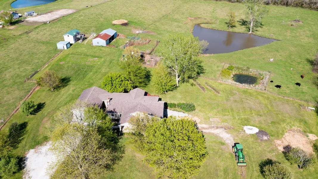 UPDATED BEAUTIFUL RANCH FAMILY home on 7.8 acres of GORGEOUS FENCED PROPERTY. 3 outbuildings, chicken coop pond and so much more!! Sit on your back deck and take in the view & wildlife!! Grape vines & fruit trees (pear, peach, cherry & apple) are just a small part of the beautiful landscaping! COMPLETELY REMODELED chef's kitchen features tons of custom cabinetry, granite tops, tile flooring, island for 6 barstools, stainless appliances, huge pantry and generous dining area with a WALL OF WINDOWS. Spacious interior mud/utility room with walk in pantry, cabinets & sink walks out to breezeway/outdoor mud room. Great room offers FLOOR TO CEILING BRICK FIREPLACE and plenty of space for entertaining family and friends. FINISHED WALK OUT LL with 2nd fireplace, 4th bedroom, office/non-conforming 5th bedroom, craft/sewing/bonus room, half bath, laundry and storage. NEW roof, siding, carpet, paint, windows & doors!! HVAC 1 year old. Frost free water tank for horses and cattle with 3 frost free hydrants. Chicken coop 9x9, 2 story outbuilding 16x24, lean to barn 24x40, shed 12x12. COUNTRY LIVING CLOSE TO TOWN, HURRY!!