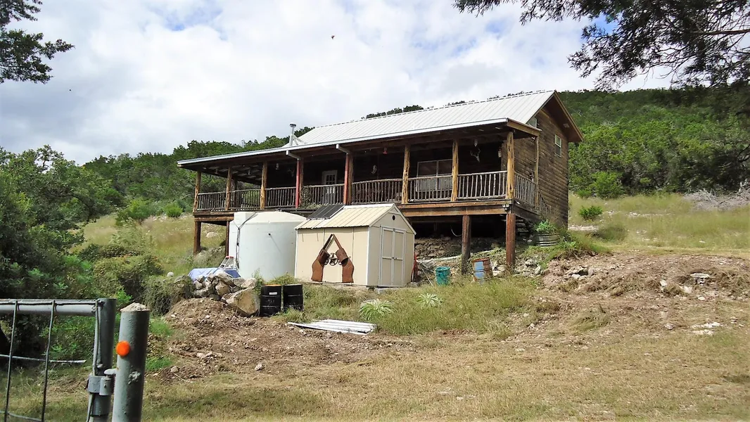 This 23.79 acre jewel has it all. Enjoy the comforts of the covered porch which wraps around the house on three sides. Located about 15 miles north of Leakey off a deeded easement road, which cant get any better of a scenic road getting to cabin. Prime hunting and recreational ranch land in Real County. This area is known for the abundance and quality of free roaming native wildlife and exotics to include whitetail deer, turkey, hogs, Axis deer and occasional Sika and Fallow deer and many aoudad. The terrain is scenic and attractive with sloping, rolling, and level land easily accessed by foot or vehicle. The Headquarters Camp consists of a 2BR/2B with travel trailer located under the covered shed.