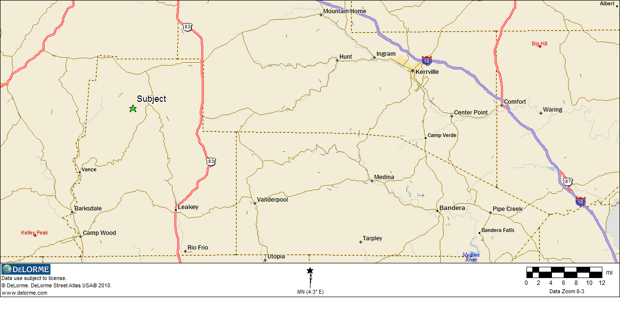 Typical hill country terrain has deep thick canyons with a wide variety of species of oak trees to hilltops that offer 30 mile picturesque views along with seasonal wet weather creeks offering travel routes for the wildlife