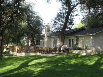 Twenty-four exceptional acres +/- with a custom designed modern 3000+ square foot home on property that encompasses both sides of Buffalo Creek in Real County, near Garner State Park. Panoramic views of the Texas Hill Country can be seen from all areas of the property. Numerous springs form a rock grotto and an abundance of lush fern and tree growth near the home. The spacious 3 bedroom, 2 1/2 bath home features formal and informal living areas, extra large kitchen, and an attached double garage. Lots of windows open to a large outdoor entertainment area and deck surrounded by beautifully landscaped lawn with mature oak and pecan trees. The home's interior includes numerous extra amenities. The acreage is fenced and cross-fenced and is irrigated from the creek. Over 1500 square feet of barn and equipment space is available. Ideally suited for a horse or small animal operation or i...