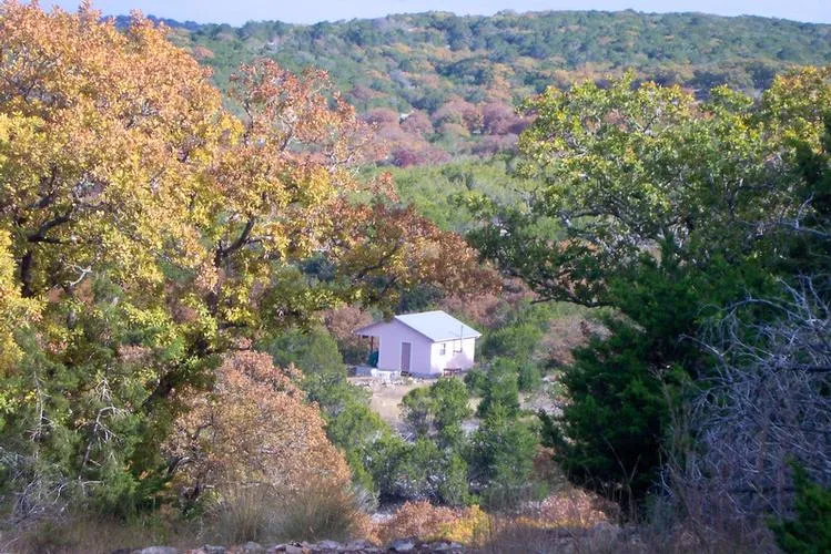 PENDING/The perfect hunting get-away. Located in the far back of a subdivision, contiguous to a large, low fenced ranch. Furnished hunting cabin, two blinds with feeders. The property is very pretty, covered with live oak, Pinion Pine, Bue Oak, Spanish Oak and native cedars. There is an abundance of wild hogs, Axis Deer and native white tail Deer. Located just 10 miles west of Leakey.