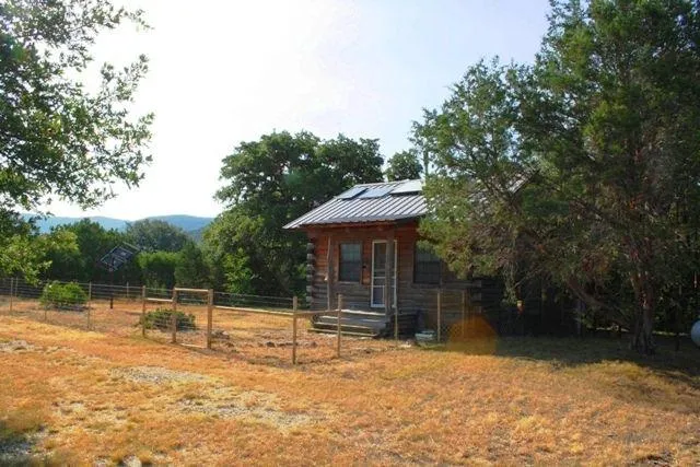 OFF THE GRID! This cozy log cabin has wonderful access and is located at the far reaches of a very private, gated, country subdivision. No one would ever guess this little jewel was here, perched on a lovely stone bluff overlooking a seasonal creek. Enjoy all the comforts of home via a solar energy system supplemented by propane. A wood cooking stove keeps you warm. The full bathroom features a composting toilet. A screened porch across the back of the cabin that overlooks the creek is an excellent place to watch the wildlife. Many huge oak trees frame the views of distant mountains. Electricity runs across the front of the property and a septic system could be easily installed, so traditionalists shouldn't worry!