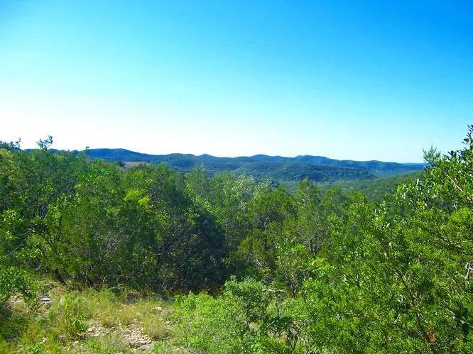 5.49 acres located west of Leakey behind a locked gate with access to some of the most amazing water in the Hill Country. As a landowner you will have access to 50 acres of common area full of spring fed lake, creeks and deep swimming hole. The property has tree covered mountain top falling down into canyon, and the land has been cleared along the ridge exposing forever views.