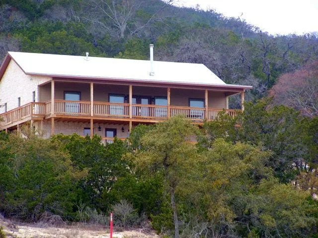 This beautiful 3BR/2 BA home sits on 9+ acres in the Spring Hill subdivision just west of downtown Leakey. It features an Austin stone exterior and double decks that run the length of the home.perfect for partaking of the stunning easterly views! The interior is tastefully furnished and the paint and flooring are lovely, neutral colors. The kitchen is spacious and the walnut counter-tops, custom cabinetry and GE stainless appliances will be a cooks delight. Most furnishings, the washer & dryer and refrigerator will convey with sale. The lower level is framed, has all plumbing and ductwork and could easily be finished out to add approximately 750 sq. ft. of living space.