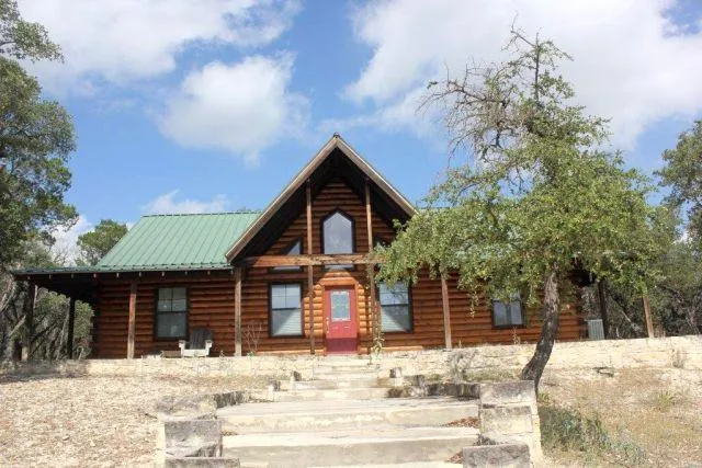 Situated on nearly 3 acres on a cul-de-sac, this lovely log home would make a great vacation home or quiet retirement home. High ceilings in the living area give an open feel and a double-sided, stone fireplace is a unique and attractive way to separate the living and dining spaces. The covered porch wraps all the way around the home! Its all electric and the refrigerator and stackable W/D -convey with sale. Frio River Place owners enjoy a gated entry, paved streets, community water system, gorgeous river park and MORE! Call for a showing. 2.5 acre tract next door is also available. So, you could have this lovely home on 5.44 acres if desired.