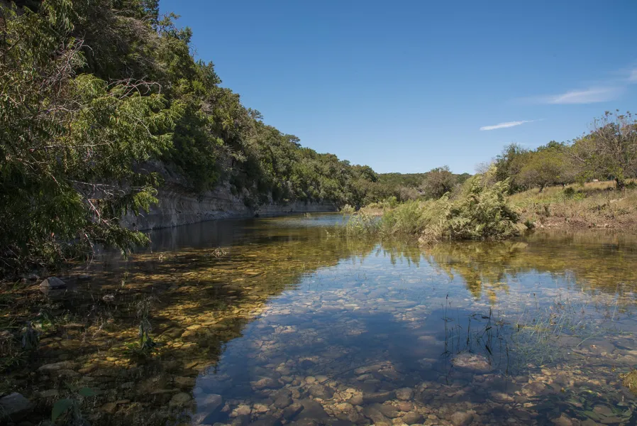 Description: This area North of Camp Wood and Barksdale was first settled in the 1840s along Bullhead Creek, under noted Bullhead Mountain. The Bullhead Creek offered settlers a clear, rock bottom, ever-flowing water source to support their homestead farms. Indian Springs Ranch has awesome views, fabulous hunting, live water, camp quarters with two R.V. trailers, water and electricity, blinds and feeders. This low-fenced ranch will excite the outdoor enthusiast. Under one industrious owner for the past 36 years, the ranch has been cleared of 99% of all cedar, leaving big oaks, great brush and browse for the wildlife. The rustic camp has capacity to sleep six along with a covered outdoor lounging and BBQ area with table and benches. A pebblestone pathway leads to...