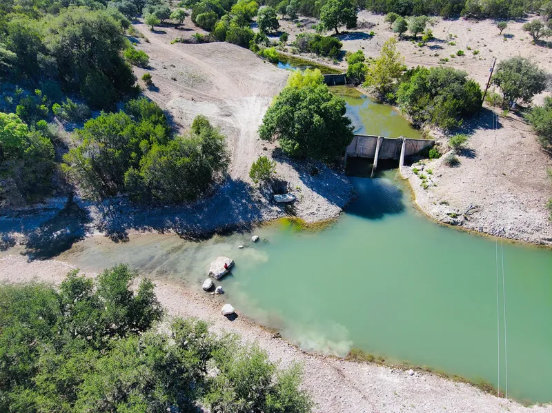 Water - The live water and springs scattered around the Ranch must be seen to be believed. The main spring-fed creek has been rock solid through the current drought and is highlighted by waterholes, waterfalls, 2 large concrete dam lakes, and an amazing new rock-lined lake with astonishingly clear, blue-green water. The main spring flows for over 2800' through a self contained Private canyon. You own both sides! Such an incredible feature! A spring originating on property, flowing through a rock bottom canyon that is supplemented by other originating spring and ending in your private lake.
