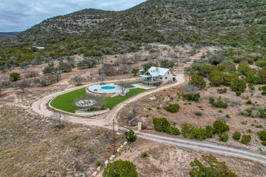 Heaven on Earth now exists in Leakey TX. Situated on 42 acres with a range of topographies including approx.. 600 Feet of West Prong of the Frio River, mountain terrain, Pecan bottom flats with 200 year old Pecan trees, wildlife galore and so much more to even list. Wonderfully situated with unbelievable Westerly views of the entire area sits a well designed completely renovated 2-story that boasts 4 bedrooms and 3.5 full baths with new plumbing, HVAC, electrical and reworked high pressure water well with a 5 stage reverse osmosis water filtration system. Large 2nd floor porch with views over the custom built swimming pool completely surrounded by turf grass and fire pit where a lifetime of memories can be made, not to mention tremendous views of the West Texas Hill Country. Included is approx.. 560 Sq ft shop/storage room located within walking distance of the house to store your ATV, tractor, Summer supplies and many others. Completely custom furnished with large mirrors/art work that make you feel like youre staying at a 6 star resort. Private, quiet, peaceful, end of the road ranchette that will make you the envy of the town for generations. Make your appointment today to see this gem before someone else does!