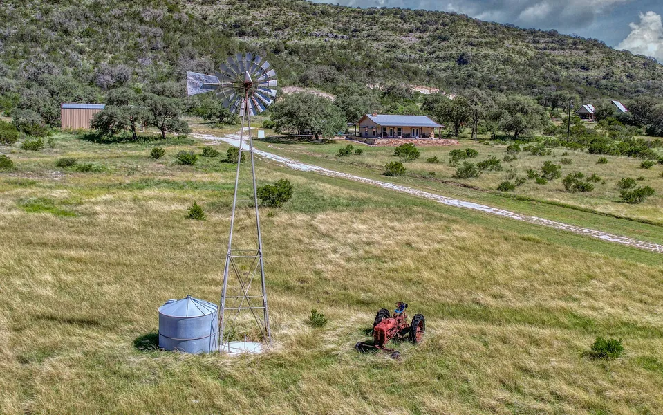 Are you searching for some hill country acreage with a home? You won't want to look any further after seeing this charmer! The 51.15 acres is located off of scenic Hwy. 337W just a few short miles from Leakey and is a mixture of flat pasture land, strong, seasonal creek with active springs, and towering hillside with amazing views. The 2BR/2B plus loft, home is well built with a large covered front porch off the living and master, perfect for taking in views to the south and east. There is also a large covered back porch off the kitchen, equipped with a hot tub. The design is open concept and you will not be disappointed the moment you step through the door. The home comes beautifully furnished and decorated with lots of wood touches, a great fireplace and a master bathroom with a walk- in shower and an Amish wooden tub. Lots of fun touches throughout the home with lighting and fixtures. There is a sleeping loft that is nice and roomy and a floored attic just off the loft that is easy to access and use. Wooden shutters have been built and installed inside, so you can totally lock up this house while you are away, making this a good choice as a 2nd home. Outside you will have a large well-built carport, and a double outdoor shower with hot water off of the well house. The well is deep and a good producer with a concrete water storage tank as well, so no need to worry about your water supply. Concrete sidewalks have been poured to keep your home mud free! There is also a spacious metal barn with roll up door, tall ceilings and a loft for even more storage. It houses a tractor and shredder and a utility vehicle that will convey. The land is in two tracts with 46 acres and improvements on the north side of the highway and 5.01 acres across the road, insuring good clean views from the house. The 5 acres has seasonal creek frontage with water well, electricity, septic and a beautiful spot under huge Oaks for a home site or cabins. There are no restrictions or HOA, enabling you to enjoy your place as you see fit. AGGRESSIVE REDUCTION! $989,000.