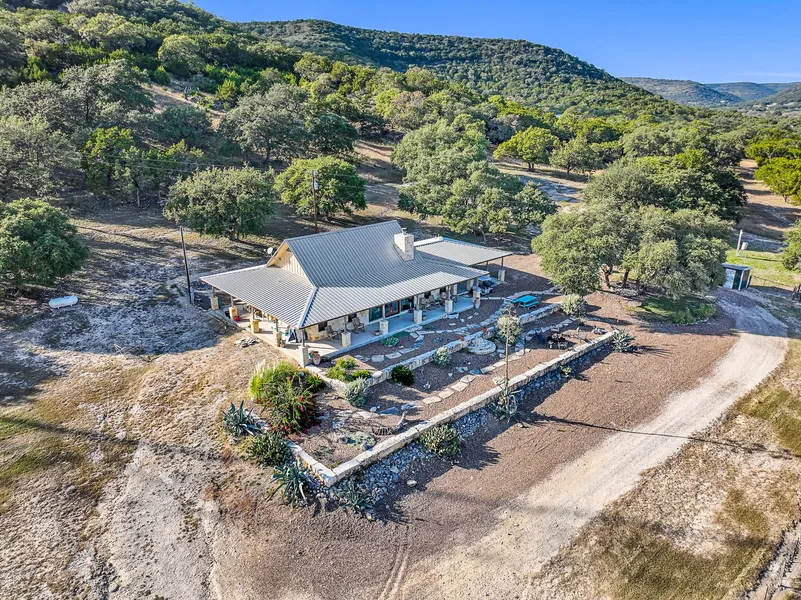 Property #14: Hill Country Beauty! Amazing custom 3/2 rock home on 21.65 +/- acres located just outside of Leakey. This beautiful property is easily accessed but with end of the road privacy it has a very secluded feel. The expansive views will literally take your breath away as will the many amazing interior features of the home. Downstairs you will find a spacious open floor plan including a gourmet kitchen that would make any chef envious as well as a wet bar, rock fireplace, & lots of warm custom cabinetry thru out. The master bedroom has an Ensuite Bath with large quality step in shower and huge wardrobe room. There is an open loft overlooking the downstairs that would be perfect for the kids play area, home office, or sleeping quarters for additional guests. The wrap around covered porch provides ample outdoor entertaining space and there is an attached 2 vehicle carport with laundry/storage room. Outbuildings include a workshop w/power & water, equipment shed, wellhouse & covered RV pad with full hook ups. Two water wells supply the property which is fenced, very livestock friendly & includes a large earthen tank. Property has no restrictions so commercial potential is an option and it comes turnkey including furnishings, appliances, equipment, & some decor. You truly must see this listing to fully appreciate all of the fine qualities you will find here. $1,250,000