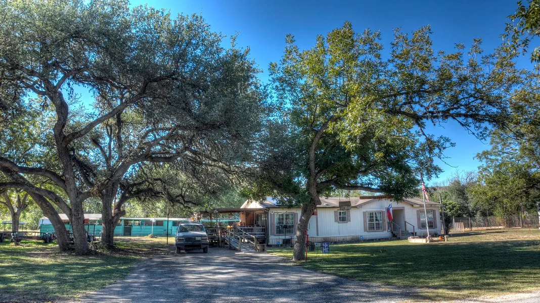 Affordably priced home on over an acre! This 3 BR/2 Ba is conveniently located just outside the Leakey city limits. Features include an open Living/Dining Room combo, a large eat-in kitchen with island, gas range, and laundry room with an additional freezer. The primary bedroom is spacious and features a large en-suite bathroom with a garden tub, separate shower, and dual vanities. This split-concept home also has two other bedrooms that share a bathroom. Central heat and A/C. Propane furnace. Propane water heater. Outside, you'll find a workshop, rabbit/chicken coop and storage building that is negotiable to convey. A new RV pad and full hook-up are also on-site. All of this and more is set on a sprawling one acre situated under huge, beautiful Pecan trees and conveniently located to restaurants, schools, and the Frio River! This home qualifies for VA, FHA, and USDA financing and has a new survey on file, making out-of-pocket closing costs minimal!