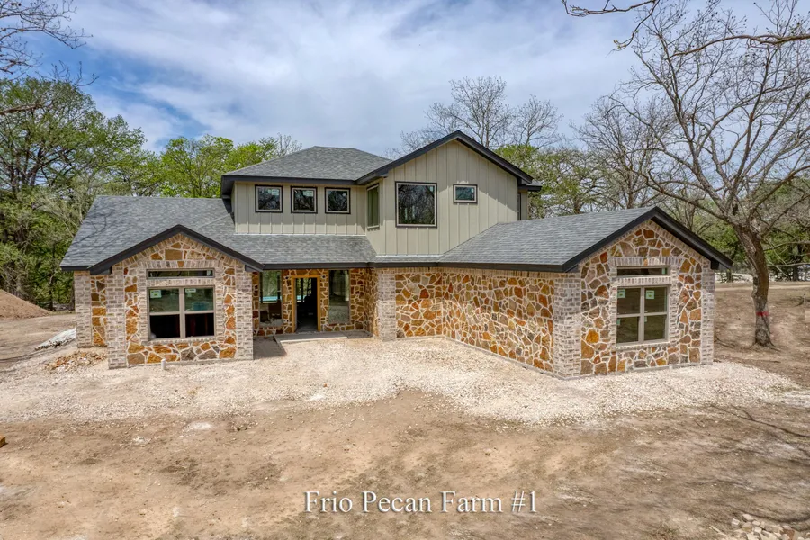 MAZING INVESTMENT PROPERTY, READY TO RENT FOR 2022. Absolutely STUNNING 6 BR/4 BA, 2910 sq ft brand new custom home located in Leakey TX at the Frio Pecan Farm, RIGHT ON THE BANKS of the Frio. Construction is approx 95% complete on 10-10-22. Custom cabinets, 100% rock/brick exterior, infinity edge pool WITH hot tub, granite, tile tubs/showers with large upstairs bonus room/bath. Located right on the edge of the bluff overlooking the Frio River. Just a few steps away from the famous Pecan Farm cliff for jumping/swinging in the Frio all day long. Located under enormous Pecan trees provide ample Summer shade, not to mention the endless Cypress Trees lining the Frio. The Pecan Farm offers many amenities that will be enjoyed by families for generations to come. Pavilion, playground and endless wildlife that stay year around are sure to make all smile. Seller to assist with purchaser interest buy-down, furnishings or other buyer assistance. 2 years of rental history, this custom home will have a wonderful ROI.