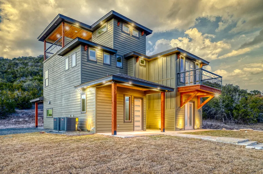 Texas Hill Country piece of heaven on earth! Brand new custom home construction. Perched on a hill side, with views for miles in every direction, sits a 2524 sq ft, 4/3.5, 3-story beauty on approx 8 acres. Super easy access, located 6 miles N of Leakey AND ONLY ABOUT 400 YARDS TO A FRIO RIVER PUBLIC CROSSING. Just wait til you see the natural stone retaining wall and rock stairs to the front door. You can see the Cypress trees on the Frio River from both porches. Yes, the upstairs master bedroom has an outdoor balcony facing East towards the river. Downstairs has a master bedroom/bath and all other main rooms. The second floor has 2 other bedrooms, besides the master, and another bath. The third floor has a party/viewing deck that will make a lifetime of memories with a bonus room. Plenty of oak trees and Juniper around make a great habitat for wildlife. Great solar water well with water storage tank. These places are very few and far between and lightly restricted to protect your investment, NO HOA, but nightly rentals not allowed. Don't miss an opportunity to see these views, be this close to the Frio River and have a brand new home!