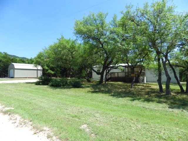 Frio River Ranches, Lot 79A, is located a couple of miles east of Leakey, off of a county maintained road. This pretty 1.73 acre tract has a 3BR/1B mobile home with large covered front and back decks with built in seating. There is a nearly new metal storage building, with electricity, fenced yard for the kids and pets, city water, and an RV hookup. The terrain is mostly flat with a deep draw in the back that supports a wet weather creek. No HOA and minimal to no restrictions makes this a perfect candidate for a vacation rental or it would make a great retirement or starter home! Dont wait long, this affordable property will not be on the market long! $124,500. CONTRACT PENDING