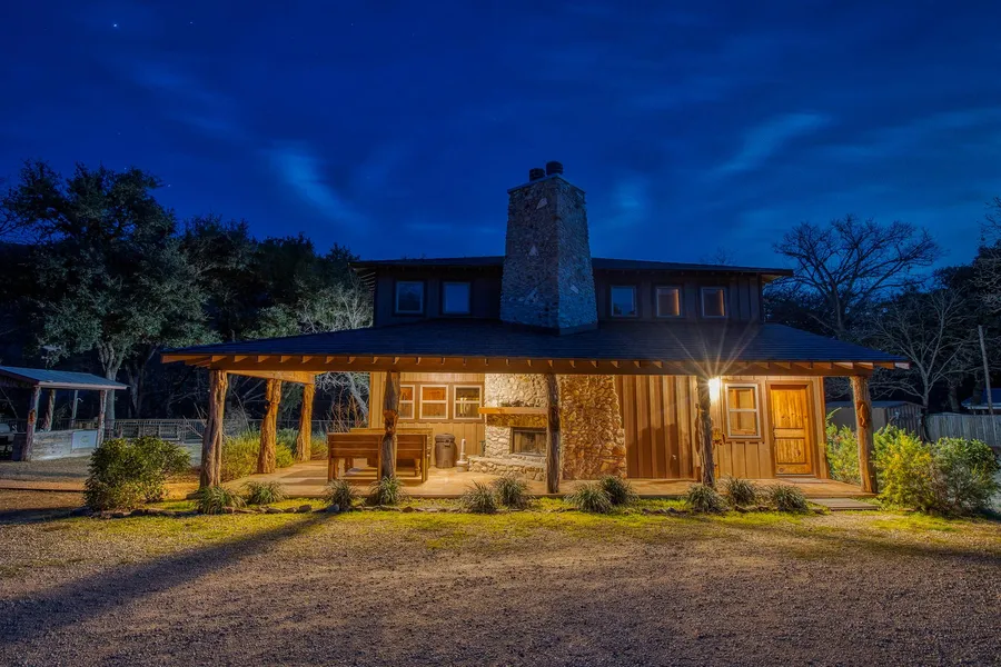 Fishcamp Lodge on the Frio River, nestled between two large picturesque hills north of Leakey about 7 miles on US Hwy 83 near the headwaters of the West Prong. Its a place that has deep, private water for kayaking, fishing and swimming with panoramic views of the cypress lined river. The original fishcamp house consists of 3-bedrooms/1 bathroom, but looking for much more, the owners designed and built an adjoining property that will certainly wow the eyes. The new lodge has an additional 3 bedrooms and 2 baths with a large great room. The goal was to create a unique space that emphasized indoor/outdoor living, incorporating locally sourced woods, decorations and designs. Not to mention, plenty of seating to enjoy beautiful vistas of sunny skies, water, trees and hills were found