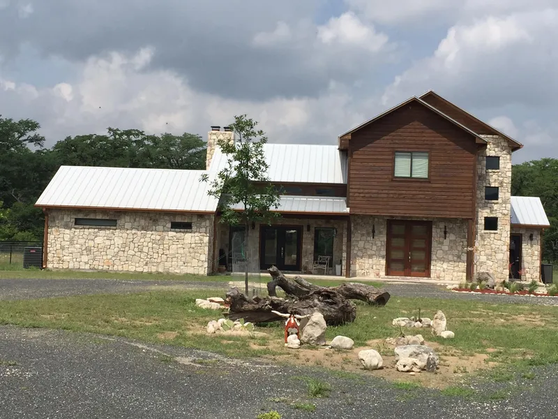 Property #41: 2.11 Acres on the banks of the crystal clear Frio River with a nearly new, quality constructed 1-1/2 story, modern home with lots of high-end amenities and a balcony that overlooks the river. Two bedroom/two bath with abundant storage areas. Sleek kitchen and dining area that has plenty of windows, with solar shades and double glass paneled doors for maximum light throughout the home. Inside and outside living rooms, each with its own fireplace. Interior living area has 22 foot ceilings, travertine flooring, quartzite counter tops and top of the line cabinets. There is a separate RV site and storage area associated with the property. Schedule a showing today. $555,000.