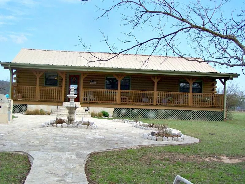 Enjoy river front living at its finest in this beautiful and spacious 3BD/2BA log home on a whopping 2.83 acres! Abundant natural light and neutral colors contrast with gorgeous woodwork throughout the home and ceramic tile graces the floors in the main areas. Ceilings are all high and the living room is accented with a stone, woodburning fireplace. Covered porches span the entire length of both the front and back of the home to enjoy both sunrises and sunsets. Beautiful rock work abounds in the landscape with the focal point being a fountain surrounded by a patio, an outdoor kitchen and a fire pit for maximum entertaining space. Huge cypress trees frame the short walk to the 165 feet of Frio River frontage.