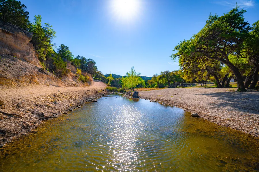 Featuring over 300 +/- linear feet of live Dry Creek, this crystal-clear creek sings and trickles off the rocks and pebbles beneath the water, echoing through the valleys. With a perfect swimming hole for families and the ability to place chairs near the rapids, the creek offers a personal oasis on your own ranch. Owning both sides of Dry Creek provides a paradise-like setting. The ranch is also supplied by a strong water well near the camp that provides water to all improvements on the ranch. Additionally, the ranch features another main draw that could be developed into another astonishing water feature.