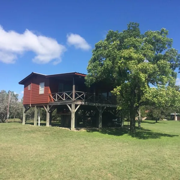 Enjoy fun and camaraderie on the Frio River as soon as this summer and for all the seasons to come! This idyllic 1.2 acre lot boasts over 112 of direct frontage on the Frio River with gentle to flat topography perfect for all sorts of outdoor activities. The functional, open-concept cabin is elevated with a kitchen, living area, sleeping space and an enclosed bathroom. It is a blank slate for new owners to customize to their taste. A large, covered deck affords beautiful views of the river and hills beyond. There is a new yard fence perfect for corralling any family pets or small children. The location is ideal for quickly accessing all of the cute shops and excellent dining establishments in downtown Leakey. While the property has some LIGHT deed restrictions, theres no requirement for HOA membership, providing you with both privacy and the freedom to enjoy your space to the fullest.