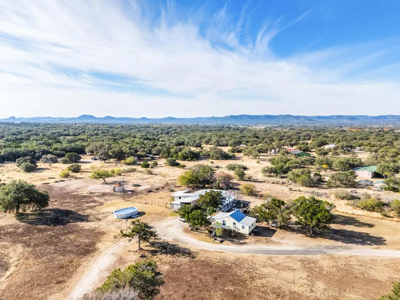 This Hill Country property has rolling hills as its backdrop, and there is literally a view in every direction. There is a small one-bedroom cottage (563 sq ft) with a fireplace that runs on propane), and a barn with a one-bedroom apartment (approx. 378 sq ft), laundry room (9' x 11') workshop and storage, and goat pens and shed. There is city water and a septic tank (750-gallon), and electricity. The electricity in the barn has been upgraded to 200 amperage. The property is completely perimeter-fenced and cross-fenced. With just the right combination of brush and clearings, the land is quite picturesque. A caliche pit close to the house and barn has been used for target practice, but it could be lined and made into a nice stock pond. There is also a possibility to subdivide the land into one-or two-acre home sites. Oaks, cedar, mountain laurel, and persimmon dot the landscape, alo...