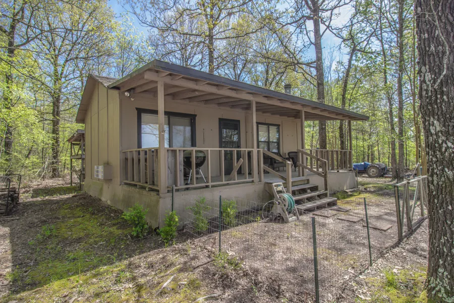 This tract has everything an outdoorsman could want. Located on a private road, behind a locked gate, you will find a beautiful hunting cabin located on a high hill and surrounded by large oak trees. The cabin is one bed one bath that has all of the amenities you could want. There are two hotel style wall A/C and Heat units, kitchen area with refrigerator and stove, bathroom with shower and much more. A nice covered ten-foot elevated porch extends across the front of the cabin and down one side. There is also a carport and a twenty-foot storage container located close to the cabin for storing your tractor, ATVs and hunting equipment. Just behind the cabin is an almost 1-acre pond that is stocked with catfish and has a fishing dock with an automatic fish feeder. The entire property is accessible through the vast network of trails that meander through the hardwood hills and bottoms. This tract is heavily timbered with some beautiful untouched hardwood trees and has food plot areas and lanes in place to hunt the deer and hogs that are plentiful on the property. The only thing you have to do is show up and enjoy. Call to see this turn-key property today!