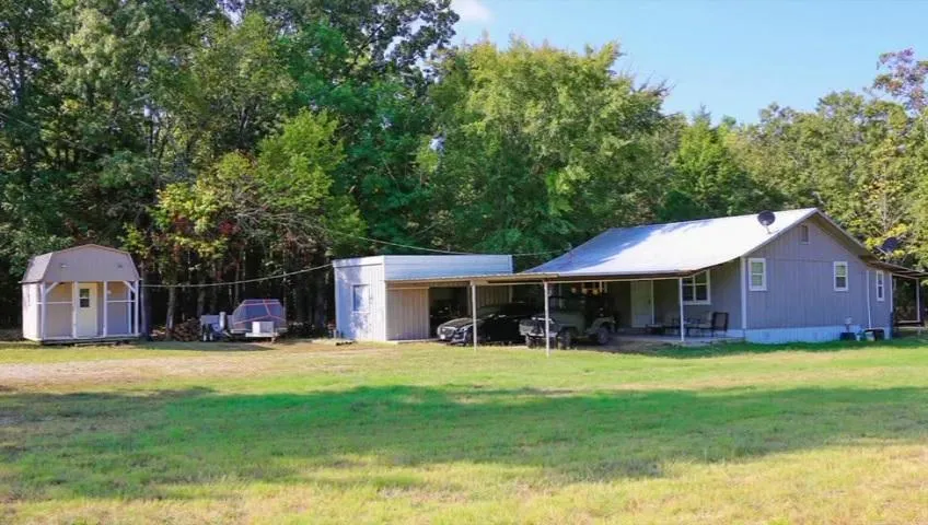 Super recreational place or use as permanent residence! 101+ acre tract with cozy 2 bedroom country home that's had a facelift! Open living and kitchen areas, good-sized bedrooms. Finished out bunk house for guests/hunters. Nice shop. Secluded, but not too far from town, with lots of trees, trails and tons of wildlife - turkey, deer and hog!