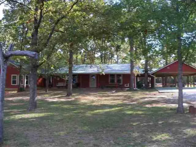 AWESOME PLACE! Whether it's a full time residence or a weekend retreat, this home is well suited for either. Nice open floor plan with huge rooms, brick fireplace and wood accents throughout. Two large outbuildings and plenty of trees - all on an acre lot close to the lake and country club. Come see!