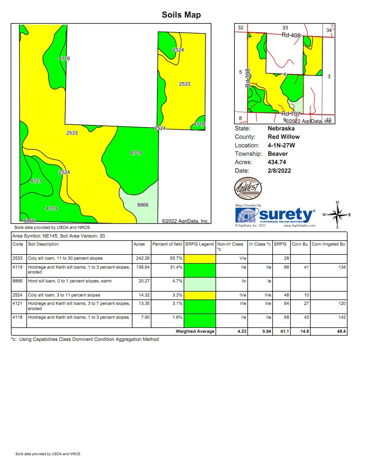 AgWest Land Brokers is proud to offer 2 tracts of dryland cropland being brought to auction on Tuesday, March 15th, 2022 at 10:00 A.M. at the Red Willow County Fairgrounds in McCook, Nebraska. The auction will consist of 762.06 +/- acres (per assessor). Productive soils and great access will make these properties a great addition to any operation!
