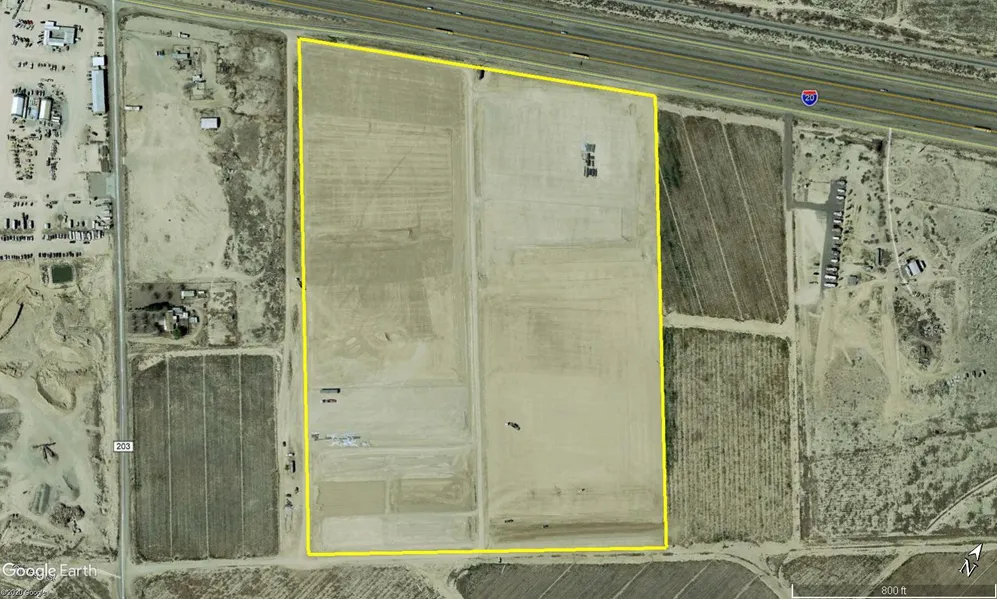 All 60 acres have had site improvement work completed, which includes grading, aggregate (caliche), and drainage. The west entrance has been completed and a road runs down the center of the property perpendicular to the highway.
