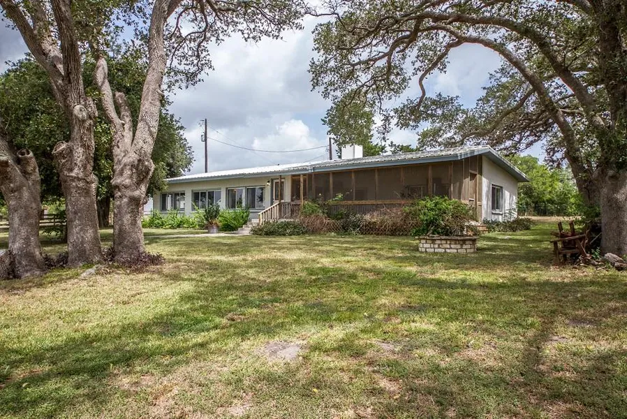 Private & peaceful Refugio ranch retreat. Enter exclusive gates to 28.54 acres of rolling terrain, pond, and country estate. Sounds of blowing trees, whistling grass, fluttering fish & butterfly wings are just what the doctor ordered, but that prescription pad lists more! Envision agriculture & game as there are 2 blinds & feeders on the property, & duck & dove hunting & fishing from the large pond. An enormous shed with 4 new garage door openers are perfect for your toys, like the tractor that conveys. Stately oak & mesquite trees guard the home, & fire pit & water fountain make for serene outdoor entertaining that you can partake in from the charming screened-in porch. Inside = FULLY FURNISHED. The open living w/gas fireplace & kitchen separate the master from the other 2 beds & utility room/4th bed. All tile, kitchen updates: shaker-style cabinets, gas range, & granite counters. Dining doubles as media room with projector & screen. Your getaway has arrivednow its time for you to.