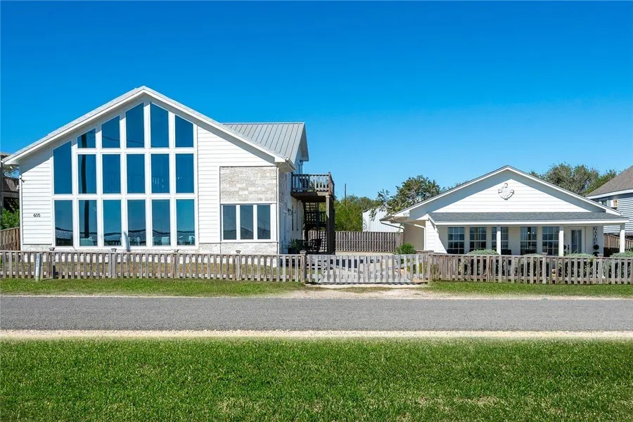 Discover this lovely Bayfront Retreat, a rare waterfront sanctuary where coastal elegance meets tranquility. Perfectly positioned along the bay, this property features two stunning residences offering a total of six bedrooms and four and a half baths, ideal for gatherings or hosting guests in style. The main home captivates with its open-concept layout, graced with soaring ceilings, and panoramic bay views. The gourmet kitchen is equipped with all-new Samsung Bluetooth appliances, perfect for both everyday living and entertaining. Enjoy the comfort of a spacious master suite with a double vanity, pocket doors, an elevator for effortless access, and an array of high-end details throughout. The guest house serves as a private retreat or an income-producing opportunity, ideally suited for short-term rentals with three bedrooms, two baths, and a cheerful kids' room. Step outside to unwind in the breezeway hot tub, take in sunset views over the water, and experience the serenity of a fully fenced, beautifully maintained property with modern utilities and new AC units. Offered optionally fully furnished, Bayfront Retreat is more than a home-it's a lifestyle of rare coastal beauty and effortless luxury. Residents enjoy direct access to the community fishing pier, offering the perfect setting to relax by the water or cast a line at sunset. Schedule your private tour today!