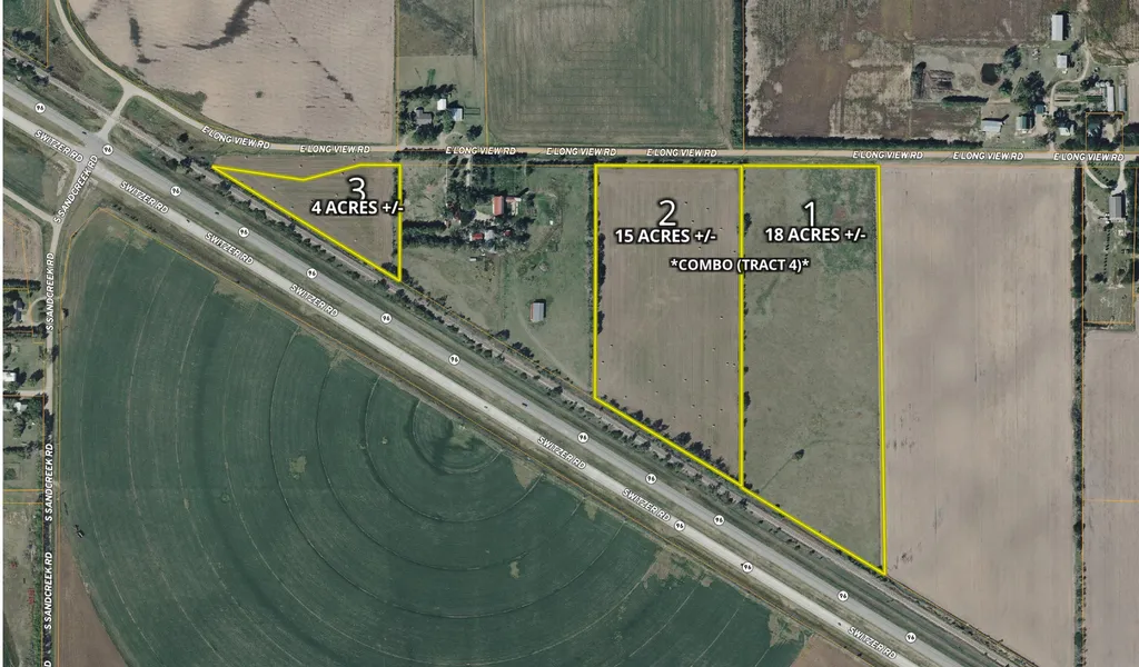 Land Auction. April 22nd, 6pm at Heritage Tours Building, Yoder, KS. Online bidding available. Selling 37 acres +/- in 3 tracts along Longview Rd. Currently in two tracts, with the larger being survey roughly in half (fence line) to create 18 and 15 approximate acres. An additional 4 acres forms the corner at Longview/SandCreek roads. Two tracts are tilled and the third used for pasture. Good, productive soils (type 2 loams) in a great location. No current lease encumbrances.