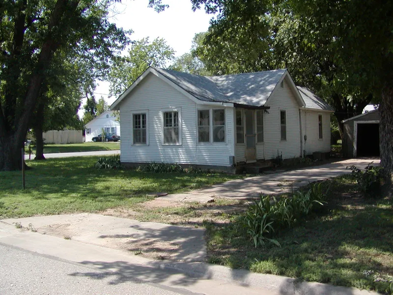 Great opportunity to buy starter home, only 15 minutes to Hutch, 20 Minutes to NW Wichita, 2 BR, 1 BA home sits on 3 lots in Haven. This one story home built in 1930 has mature trees, 688 sq ft of living space, central heat/ac, chain link fence in the back and a detached garage. Owner will carry loan.