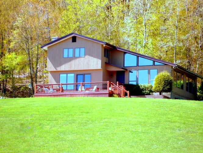 The spacious deck of this Cedar home built in 1978, ideal for entertaining or reading your favorite novel, looks out over the acre stocked pond, lawns, fields and tennis court to an unspoiled 180o view of tree covered mountains. This amount of tranquility and privacy are rare but being tucked against the backdrop of a sturdy mountain of its own on 40 acres of meadows and woodland, the four bedroom 2318 sq. ft. contemporary home in exceptional condition might be the retreat from the stresses of a busier life you have been hoping to find. Cathedral ceiling Living Room with wet bar and Dining Room has superb views as does the fireplaced family room. Perfect for full time or second home and for those preferring affordability and privacy over ha...