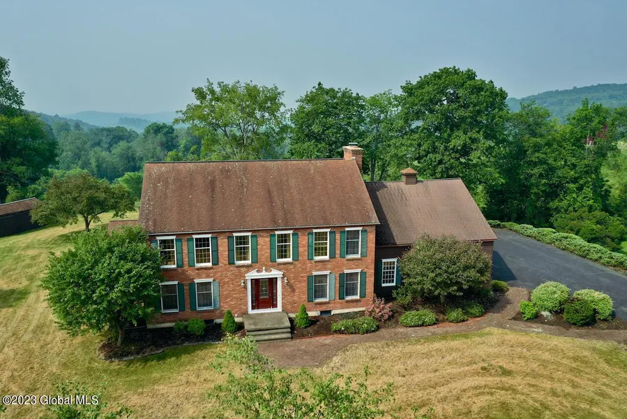Sprawling estate with breathtaking views of Albany & the Catskill mountains, Come see this stately brick colonial situated on 5 private acres in desired Brunswick school district. Beautiful pond & large detached barn equip with hardwood upstairs bonus room & electric. Pride in ownership really shows in the single owner home. Walk into your grand marble entry w/ large office off to the side complete with custom built ins. Large family room that flows into the formal dining room & screened in slate porch overlooking the property. Country kitchen with breakfast nook with windows adding tons of natural light. Family room with wood burning fireplace & huge bonus room with sink & mini fridge above the garage. Upstairs laundry room, 4 spacious bedrooms with plenty of storage.
