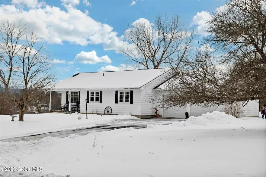 Charming Ranch with Stunning Views! Experience the ease of first-floor living in this meticulously maintained ranch home. Featuring hardwood floors, three bedrooms and a beautifully updated kitchen, this home blends comfort with timely updates. The poured foundation basement, boasting tall ceilings, offers endless possibilities for additional living space or storage. Situated on two combined lots totaling 1.04 acres, this property provides a sense of seclusion while still being conveniently located. Enjoy crisp evenings on the covered back porch or cozy up indoors by the fireplace. An attached two-car garage and laundry on the main level adds to the home's practicality. Don't miss this exceptional opportunity!