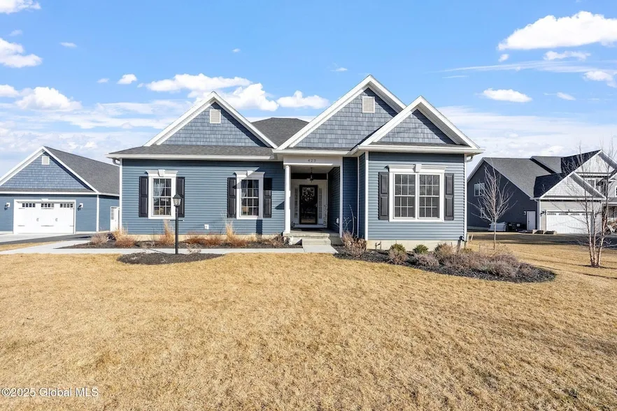 Why build when you can move right into this rare, 2-year-young expansive ranch with space to grow. Truly a forever home, this meticulously designed home features 12' ceilings in the great room, recessed lighting, and a chef's kitchen with Schrock maple cabinets, deep granite counters, and soft-close drawers. Luxury vinyl flooring flows throughout the main areas, with ceramic tile bathrooms. Step out the sliding doors in the great room to a backyard, perfect for entertaining, boasting a covered porch, deck and patio, all fenced-in. 2-car attached garage is complemented by a 1,000 sqft detached heated garage with a utility sink. Located less than 20 minutes from Amtrak & Airport! All warranties transferable. Public utilities.
