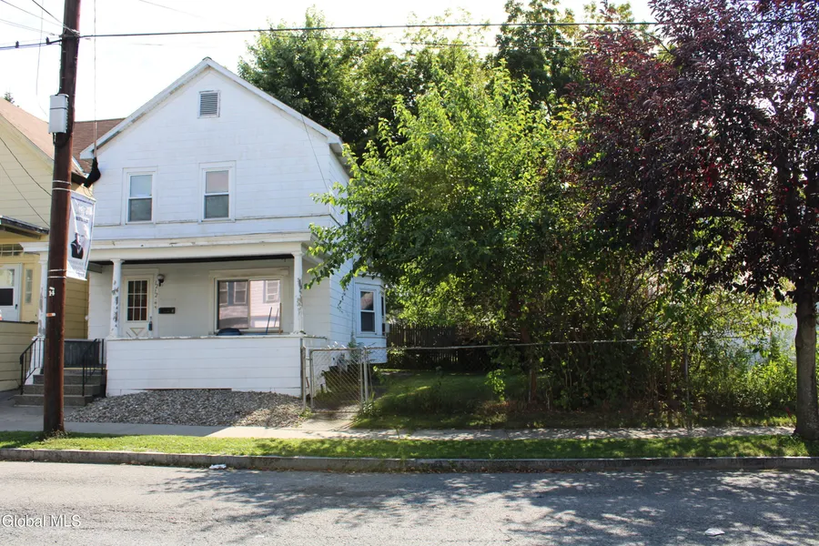 Conveniently located Three bedroom home. First floor Living Room, Dining Room, Laundry closet & Kitchen w/ gas oven. Gorgeous Original woodwork trim throughout home including banister & stairway . Upstairs Bedrooms with hardwoods. Nice size full bathroom w/ tub and linen closet. Level back & side yard with some fencing. This home will not pass FHA, some scraping, painting & repairs needed on exterior.. Nat grid avg $176.00 month