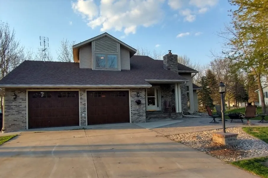 Welcome to your new home! This 4 bed/4 bath home is located on the edge of town with nothing but fields, trees and grass as your view to the west. The large lot across the road is included for a total of 1.27 acres. This home has an open floor plan with large spacious kitchen and dining areas. Cozy up to the fireplace in the living room with cathedral ceilings. Master bedroom has its own bath and walk in closet. Finished basement with family room, bedroom and sauna/bath.Beautifully landscaped yard