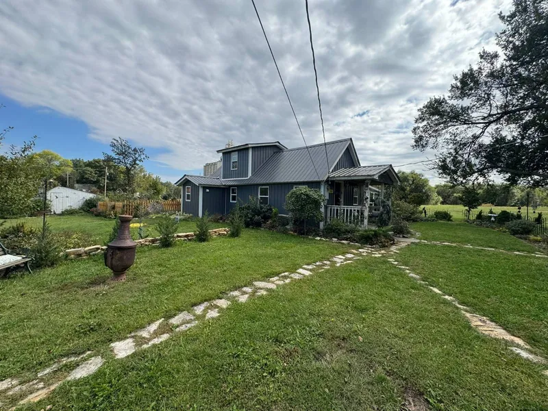 Welcome to this adorable 2-bedroom, 1-bath cottage offering 1,070 sq ft of inviting living space. Nestled on a large 0.46-acre corner lot, this property blends rustic charm with modern convenience, making it the perfect retreat or full-time residence. Step inside to an open-concept layout with bar stool seating, perfect for entertaining friends or enjoying casual meals. The large sunroom/living room fills the home with natural light, creating a warm and welcoming atmosphere. A metal roof adds both durability and character, while the electric fireplace and window A/C keep you comfortable year-round. The kitchen comes fully equipped with all appliances included, making move-in a breeze. Outside, you'll find a beautifully landscaped yard complete with a water system, dry river bed, and garden area - ideal for anyone who loves the outdoors. Enjoy outdoor seating areas, a partially fenced backyard, and plenty of space for gatherings or relaxation. Additional features include a 1-car detached garage, new large storage shed, and ample room for parking or expansion. This property offers a unique mix of rustic charm and practical amenities - all on a generous lot. Don't miss the chance to own this cozy cottage with room to grow!