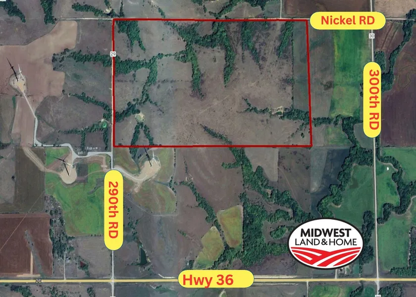From Cuba KS: From the Hwy 36 & Hwy 139 and Rd 260 intersection (Walthers corner) go East on Hwy 36 travel approximately 3 miles to 290th Rd. Turn North and travel 1/2 mile. This is the southwest corner of the property. WATCH FOR SIGNS!