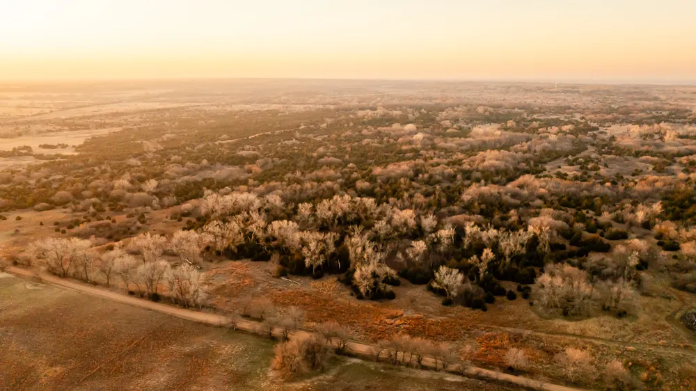 When most people are searching for a hunting property they are often thinking to themselves how much of the property hunts? Or better stated how much of the property is suitable wildlife habitat or year-round cover that also provides hunter concealment? Well, here it is. 100% Kansas hunting land. This dense cover is home to an abundance of whitetail deer, many trophy-class bucks reach maturity with this type of protection. Traveling tom turkeys bound through these Sandhills with spring fever, eager to come to your call. Towering cottonwood trees roost dozens of birds each night and a still dawn is something of pure magic. Covey after covey of quail call this farm home, they can be easy to find with trained dogs. The tall grasses, plum thickets, cedar groves, and scattered hardwoods create excellent conditions for wildlife to thrive.