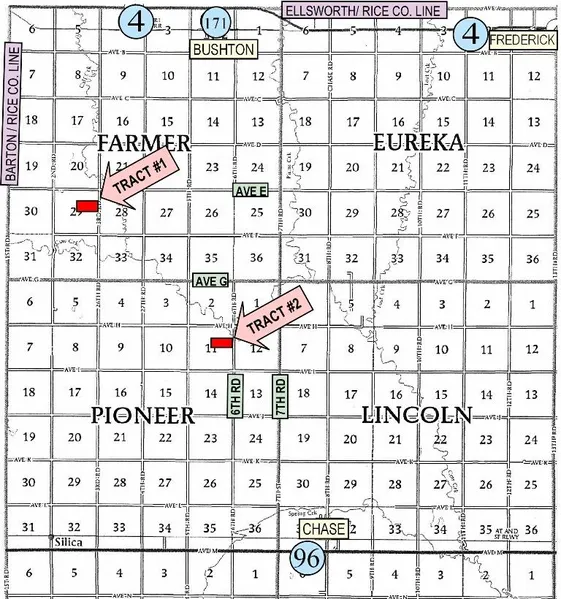 TRACT #1. S/2 NE/4 29-18-10, Rice Co., KS 80 Acres, More or Less, Consisting of 53 Acres Dry Cropland and 27 Acres Pasture. 2018 Taxes Were $349.40.