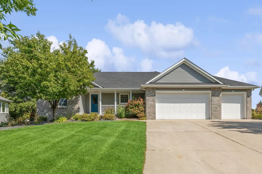 Space--for privacy, gardens, hobbies, entertaining, adventures, storage, work, and living! Treasure this extraordinary 5 bedroom, 3 bath, walkout rambler situated on a .47 acre lot with a treetop deck and wood paneled, four season porch overlooking a manicured lawn, glittering skies, and pillows of clouds from one of the highest points in town. Note the details--a gas fireplace with an Italian marble surround, a gourmet kitchen with GE Cafe appliances featuring an induction cooktop range, large center island, oak cabinets, and solid surface counters, a separate, main floor laundry room, three bedrooms on the main level including the primary bedroom suite, a gracious entry, oak flooring, six-panel doors, vaulted ceilings, pocket doors, an oversized, 3 car garage with a workbench, and exceptional storage space--a store room 20x6, cold storage 10x2, mechanical room, garage attic storage, and a garden shed. Hop, skip, jump to parks, paths, and three schools from this incredible home.