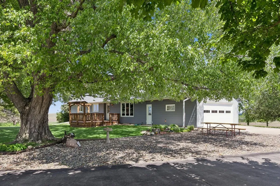 Come Home to Country. Capture peace, privacy, and panoramic countryside views in this meticulously maintained four bedroom, two bath walk-out rambler on 1.8 acres. Note two decks, three bedrooms on the main floor, a wood burning fireplace, a second kitchen, built-in cabinetry, a laundry chute, newer shingles, an extra long, two car attached garage, a storage shed, and the 24x36 steel utility building with a cement floor. Country living at its best.